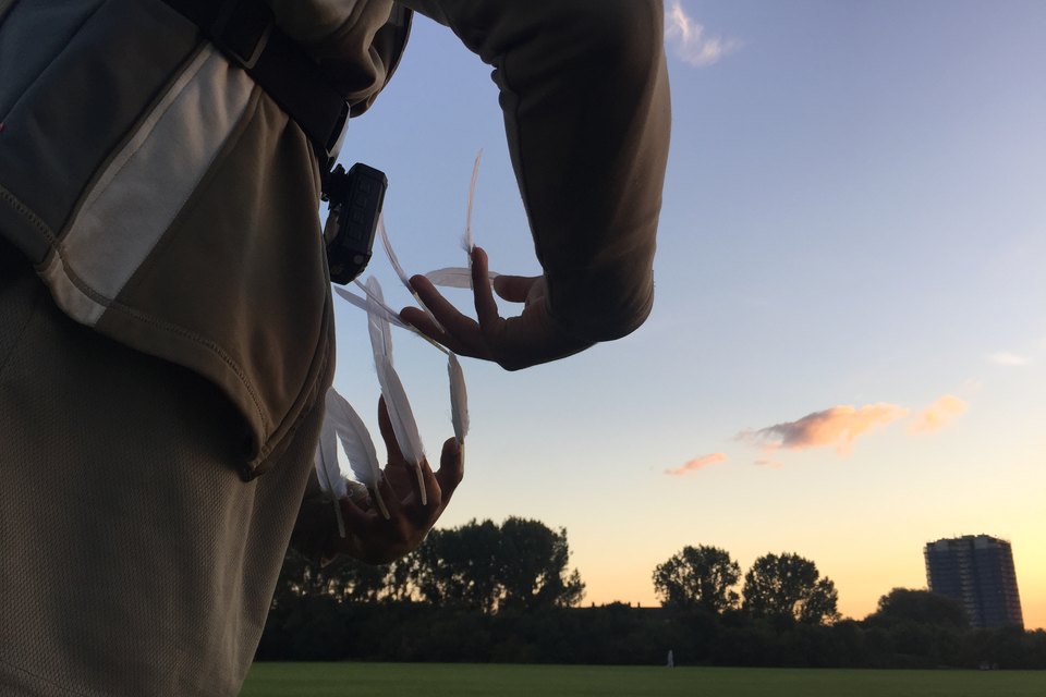 A key experiment explored by the artists during their residency was the use of a body camera; a process that has resulted in a series of five essay-style videos that are framed and punctuated by conversational title cards holding soundtracks that are only audible to the artists while dancing. Seeking to subvert the body camera’s gaze over the bodies that it is normally pointed against, the artists use and misuse the camera beyond its original purpose and function, reclaiming it to become a witness to moments of care, love and attention.