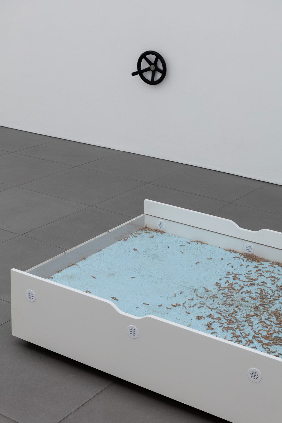 In addition to the formal and material experiments with new sculpture and photographic image distribution, Pariset incorporates organic properties, such as live mealworms together with the artist’s home produced bio-plastic. Fragments of photographic image depict a fantasised passing of traditions through generations of privilege. Luxury images of equestrian sports and wealthy leisure pursuits are repurposed, as are furniture ready-mades into new sculpture where an exchange between consumer image, domestic object and organic matter test the ubiquitous conventions of tradition against the unwieldy nature of the ageing process. As the work slowly degrades and changes over time, age acts as counter-productive labour and becomes a new potential agent for value.