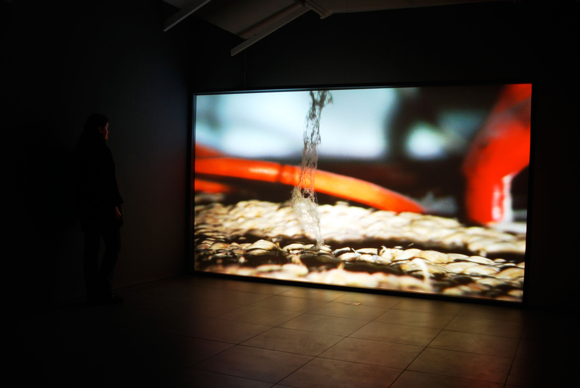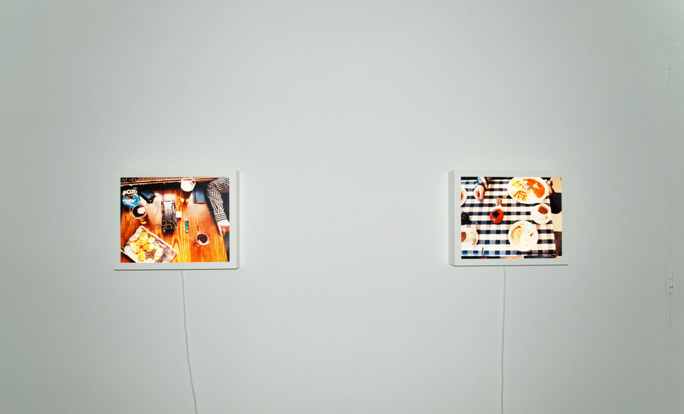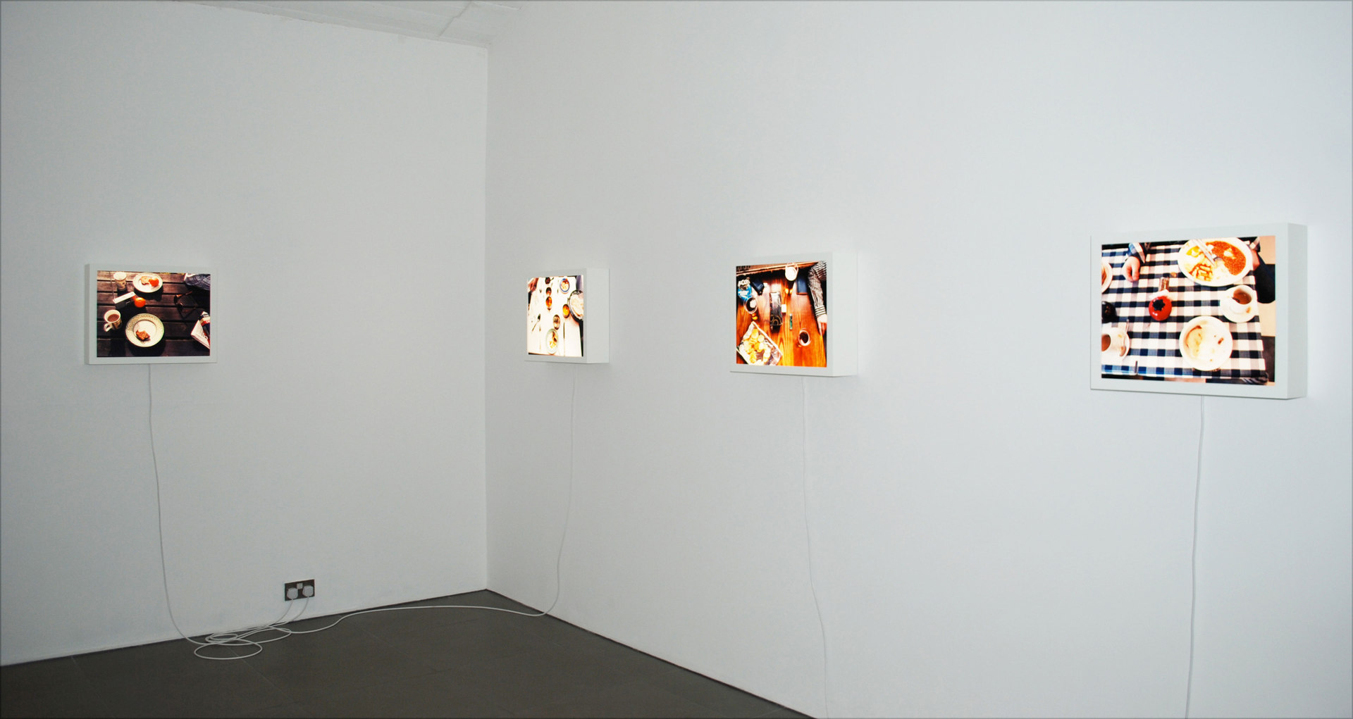 The exhibition presents 3 works where the camera becomes the protagonist. ‘LOST’, 2009 – 2011, Hart maintains this is a new use for the camera. It reveals a super-sized view into the crevices of our domestic world. By pushing the video camera into awkward places then looking at what appears on its screen Hart can see what has been lost. The work ruptures our relationship with the familiar and mundane by exploding this experience into high definition and stereophonic sound. The camera excavates unforeseeable treasure, by its bizarre and insistent foraging to unveil the spoils underneath a sofa. ‘Car Crash’, 2011 a series of photographic still lives, will be shown in the gallery’s rear space. Hart asked people about car crashes they had been in. If they used objects in front of them to describe the crash, she took a photograph. The work presents a conversation through a camera at a dining table. Hart uses the camera to transform areas of the tabletop into a mini landscape as cutlery and dinnerware are carefully placed to describe more violent scenes of road traffic collisions. ‘Dice’, 2009 reinforces the artist’s willingness to let the camera perform. Throughout the footage we hear a voice, we catch sight of a hand, but the work suspends belief as the camera frame sets the arena for a game of dice with the sea. A simple cube of plastic comes face to face with the complex dynamics of a turbulent sea.
