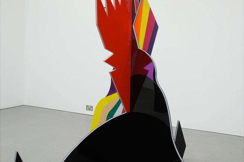 Glimpses and samples of Aztec sun worship, the occult, pagan ritual, Native American totem and folkloric decoration are present in the sculptural work of Steve Green as he plunders the belief systems of metaphysical shapes and objects. However, his use of sleek, highly polished acrylic and glossy petro-chemical colour, is loaded with the surface and design elements of the sign, freed from direct signification, to instead connote a more general mysticism. A resolution from the realms of ‘New Generation’ abstraction, of appropriated forms from abandoned minimalist trajectories. Green attempts to communicate without absolute, relying on an interpretation that objects hold certain transcendental properties to more receptive onlookers.