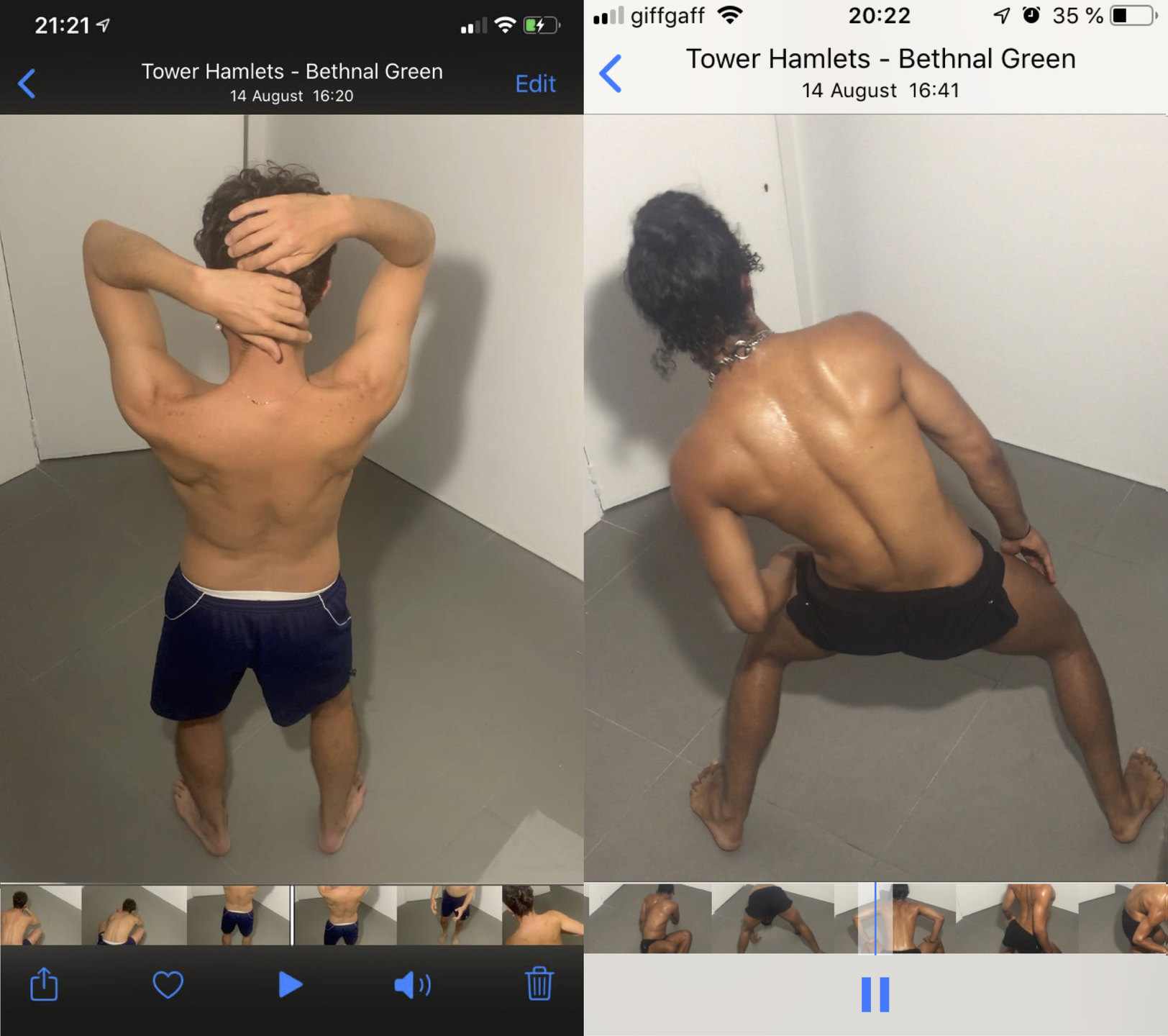 During the residency we considered back-to-front dancing, a distinguished choreographic format practiced in Dancehall and Reggaeton movement (also in Bounce and Twerking) known also as Sandungueo or Perreo. Presenting muddled dualities of vulnerability and power, submission and agency, the typically gendered roles of this couple dance format have themselves been queered through queer-feminist discourses of sex positivity as well as anti-hegemonic political actioning in Latin America. Conducting somatic spinal explorations with familiar forms of social dance, we considered the micro and macro political implications of offering cameras and surveillance apparatus our back - declaring presence whilst upholding relative anonymity, finding empowerment and self gratification through the act of serving the behind.