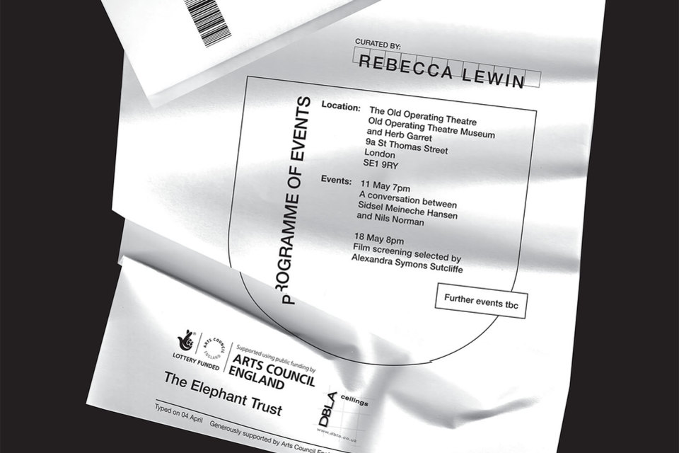 This project will take place at Cell Project Space in Bethnal Green and at The Old Operating Theatre in Southwark. A new video work by Jos Bitelli will occupy the exhibition space at Cell, with a series of events initiated by Rebecca Lewin will take place concurrently in the historic spaces of The Old Operating Theatre, with contributions from Sidsel Meineche Hansen, Nils Norman and others.